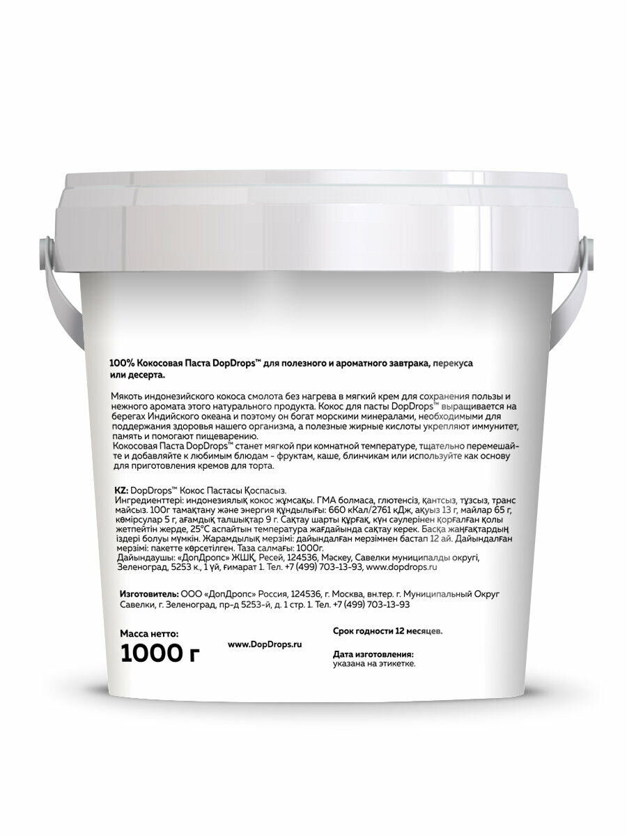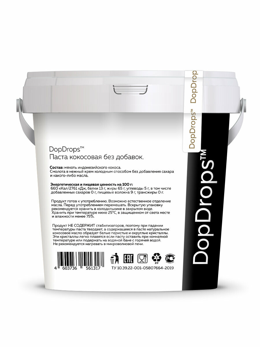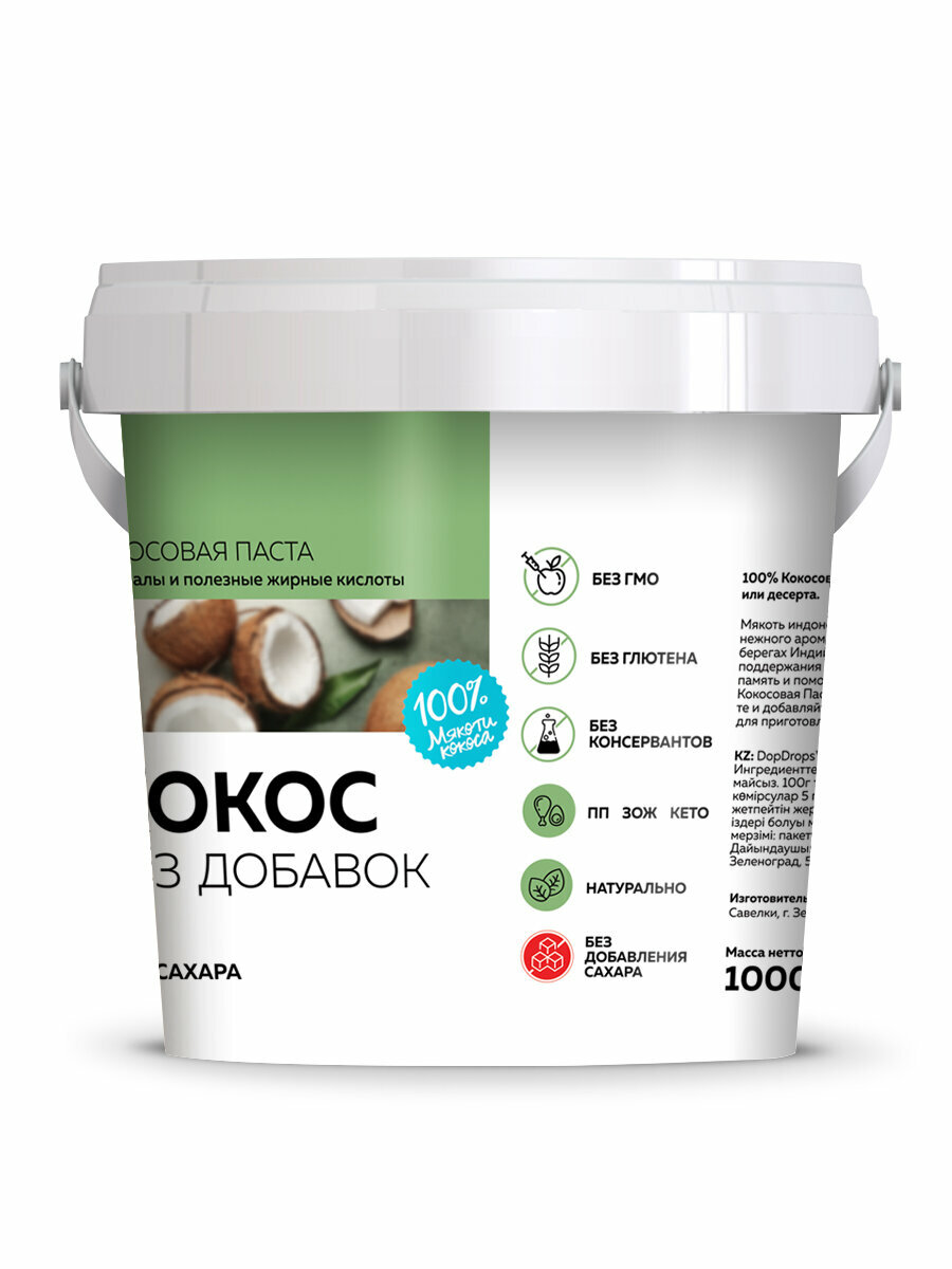 Кокосовая паста DopDrops ( кокос ) урбеч без сахара 2 по 1 кг информация: