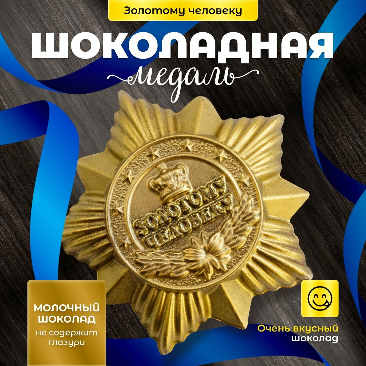 Шоколадная Медаль "Золотому человеку". Оригинальные вкусняшки ручной работы, вкусный и необычный фигурный подарок информация: