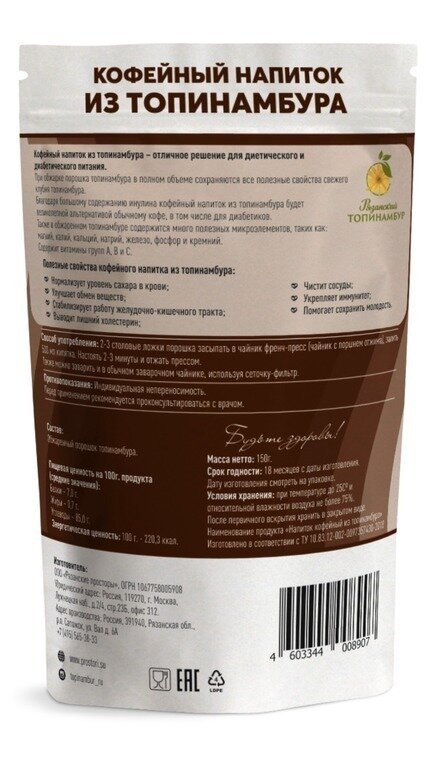 10 цен на Кофейный напиток из топинамбура (кофезаменитель) Рязанские просторы 150гр.