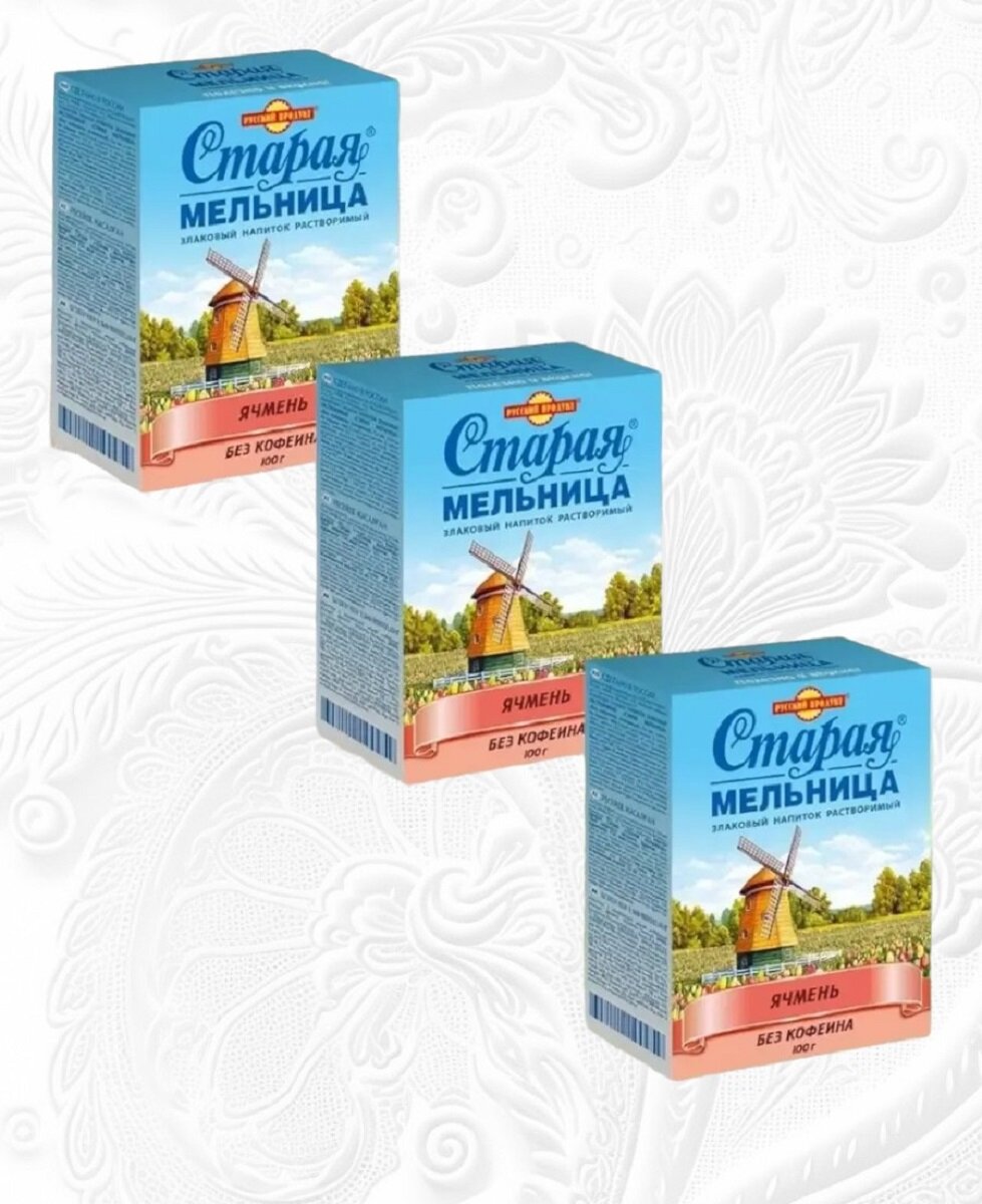 Русский Продукт Старая Мельница Ячмень, Злаковый Напиток, растворимый, без кофеина, 100 г. (3 шт.) информация: