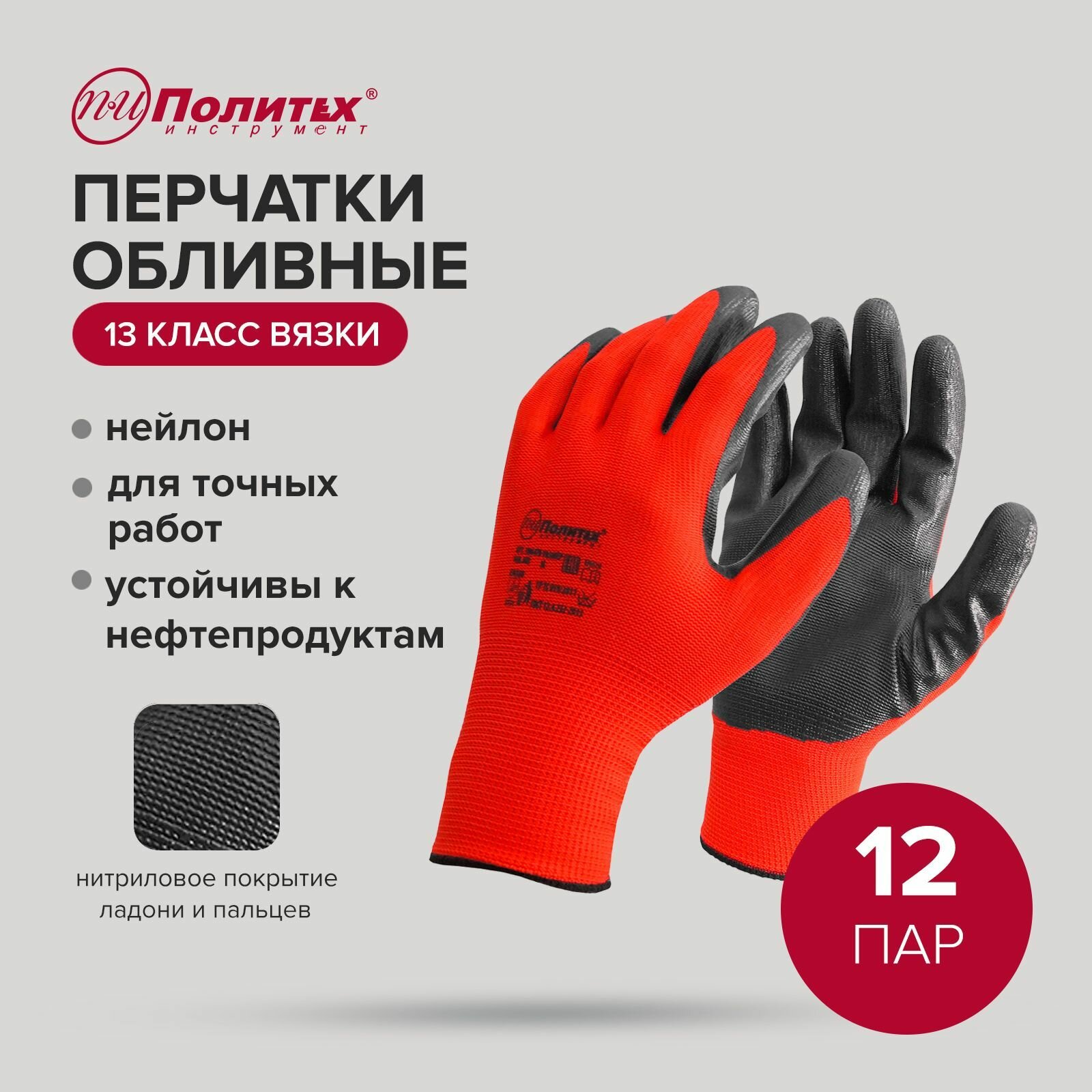 10 цен на Перчатки рабочие, нейлоновые с нитриловым обливом, 12 пар Политех Инструмент