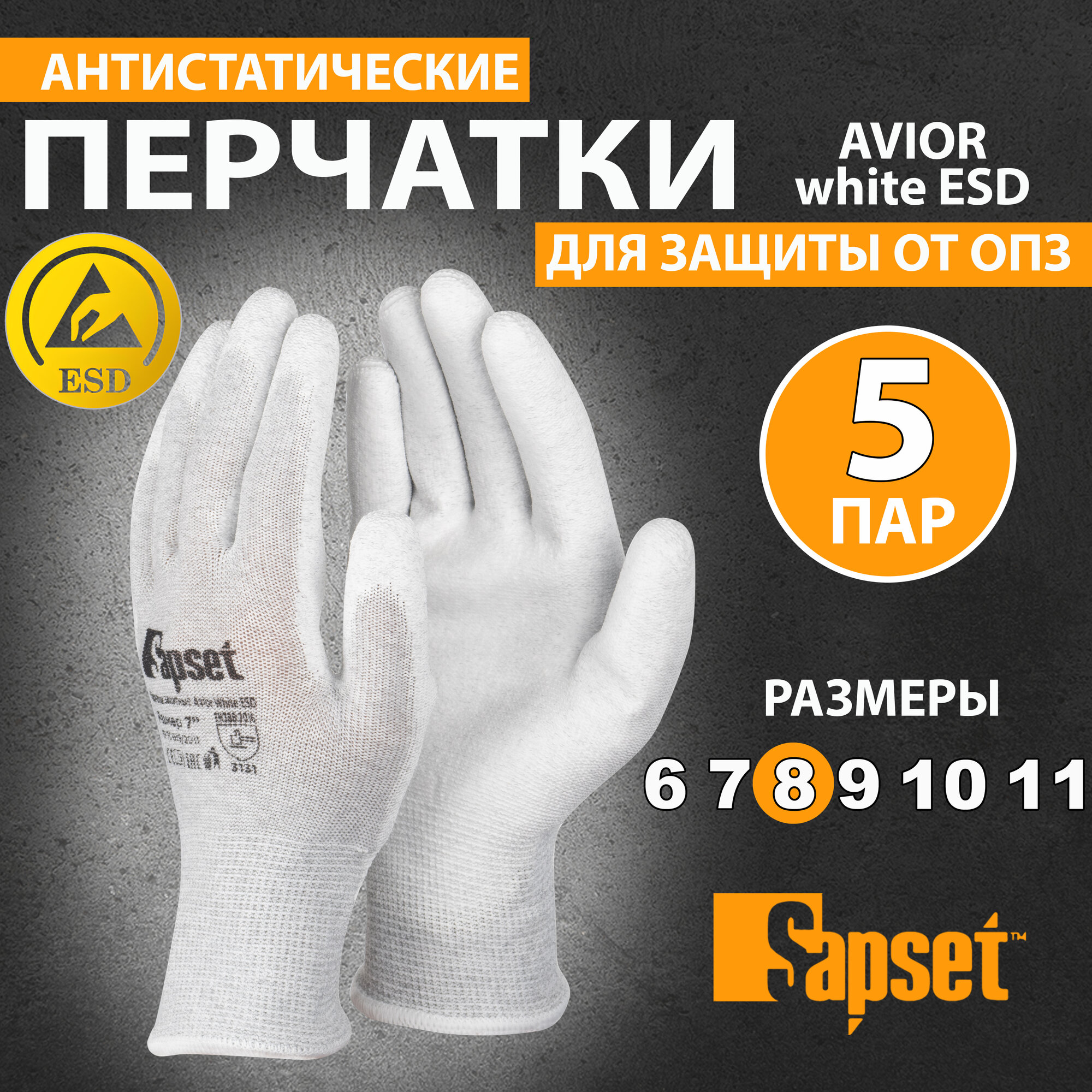 Перчатки рабочие антистатические Sapset Avior White ESD, размер M/8 - 5 пар информация: