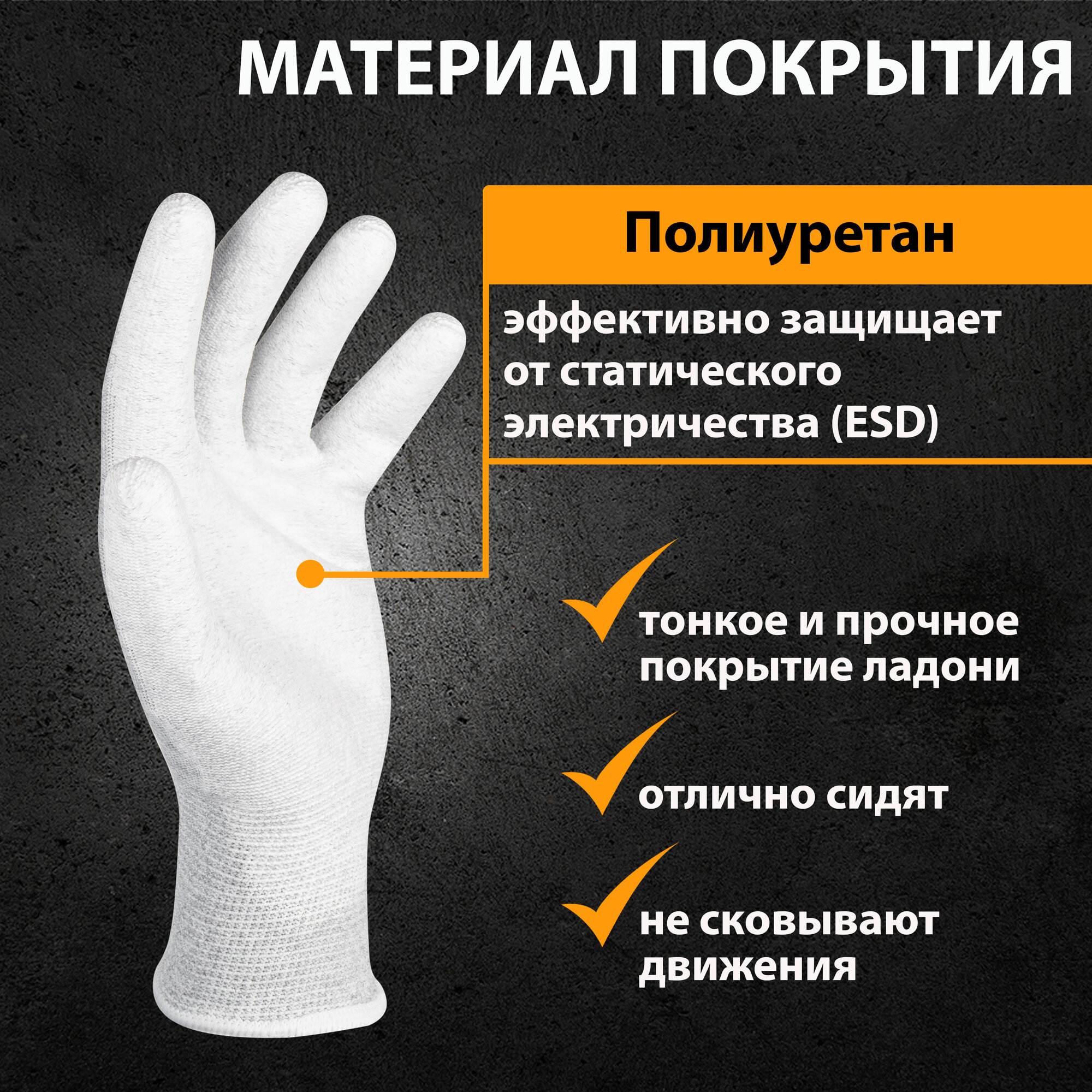 Перчатки рабочие с покрытием из полиуретана Sapset Avior White ESD антистатические размер M/8 - 5 пар