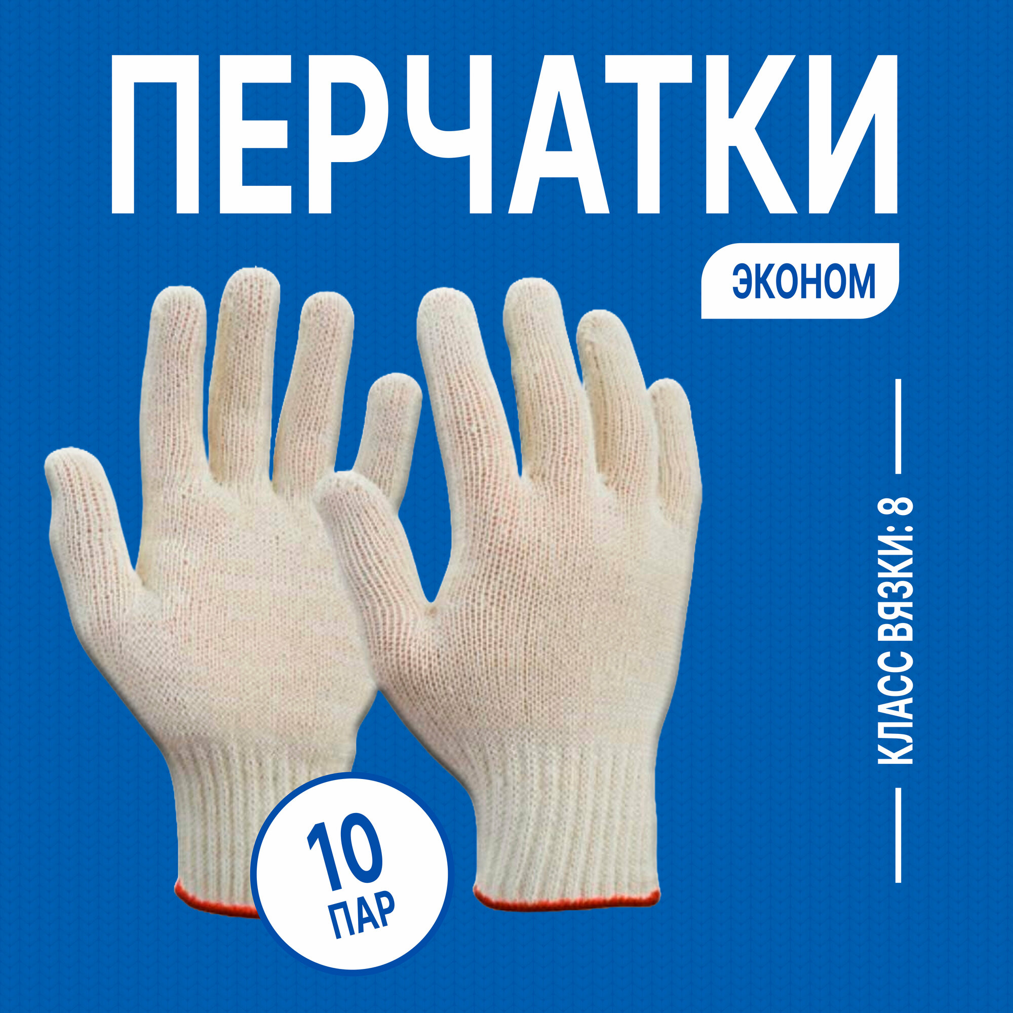 10 цен на Перчатки рабочие ХБ эконом без ПВХ белые 10 ПАР В упаковке
