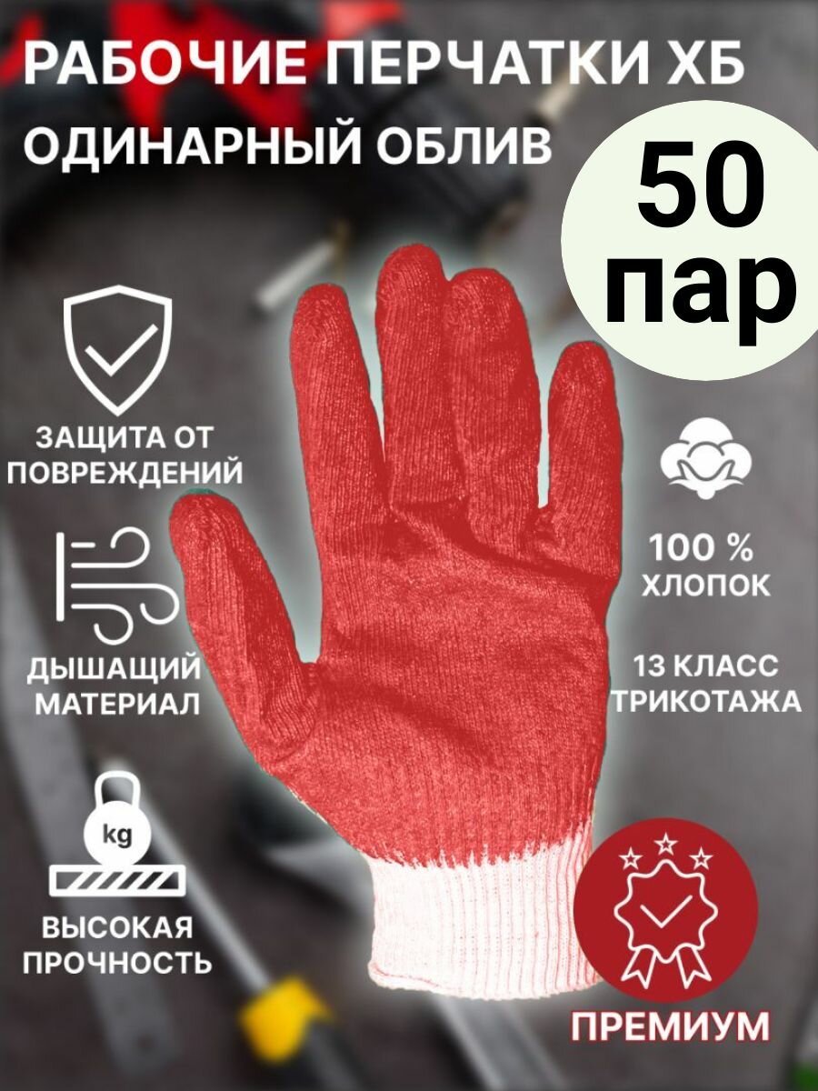 10 цен на Перчатки рабочие ХБ с одинарным латексным покрытием, 50 пар, красный, универсальный