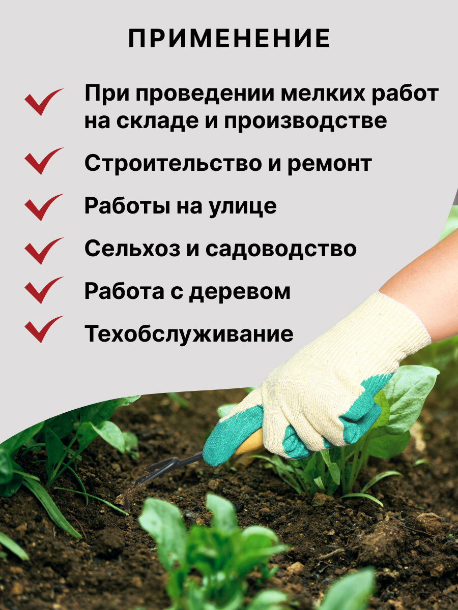 10 цен на Перчатки рабочие ХБ с одинарным латексным покрытием, 100 пар, красный, универсальный