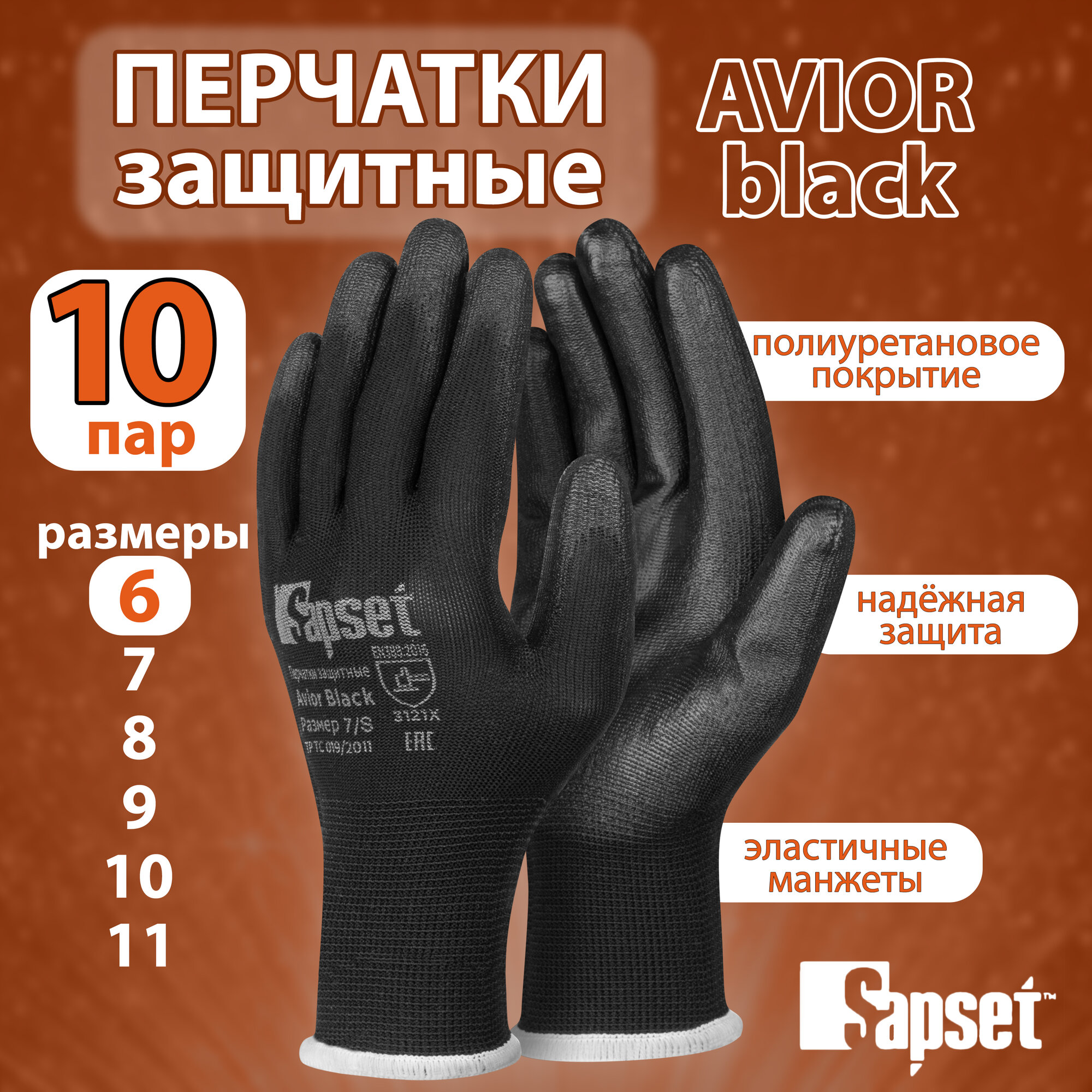Перчатки рабочие Sapset Avior Black с покрытием из полиуретана, размер S/7 - 10 пар 1 135 ₽