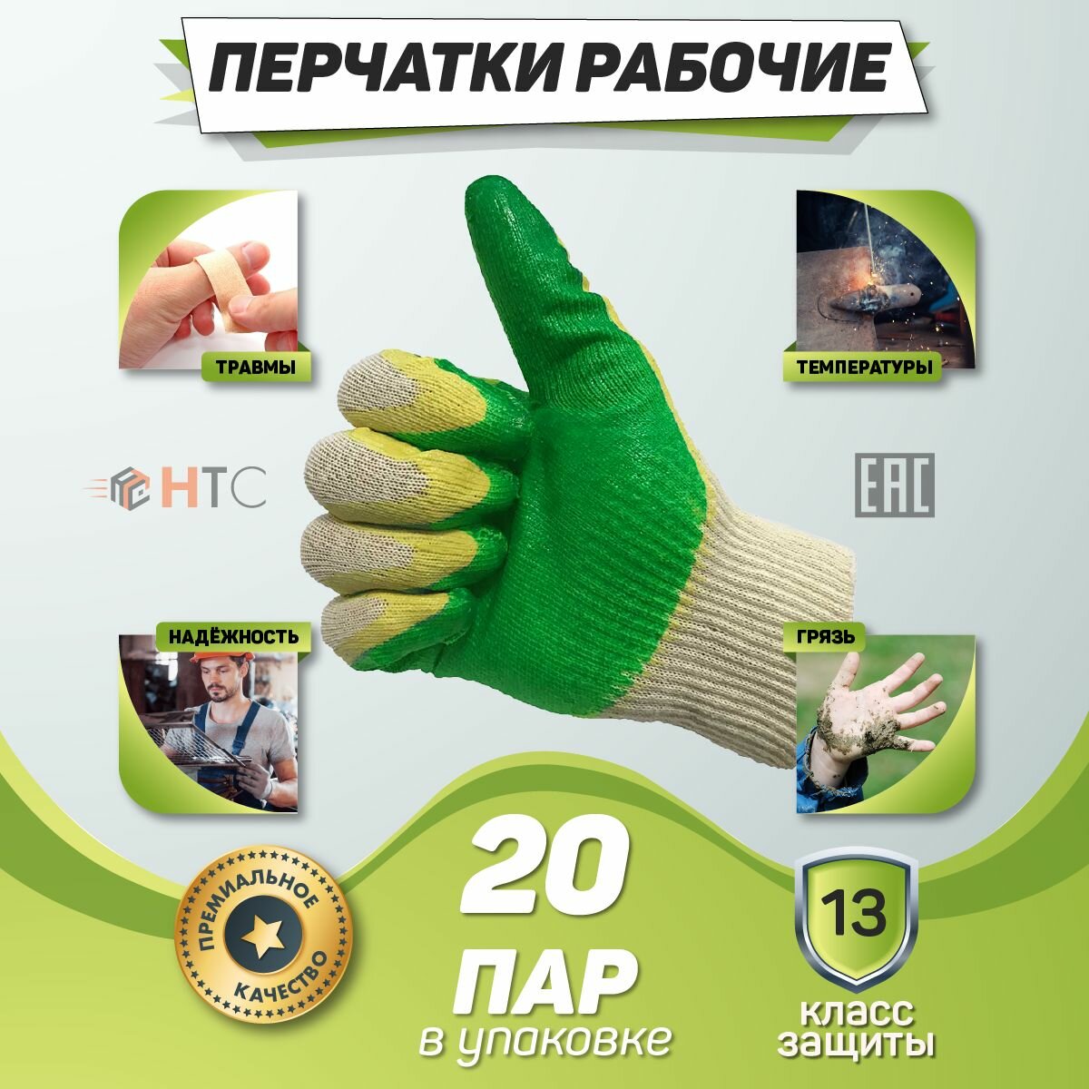 10 цен на Перчатки рабочие НТС, строительные с двойным латексным обливом 20 пар