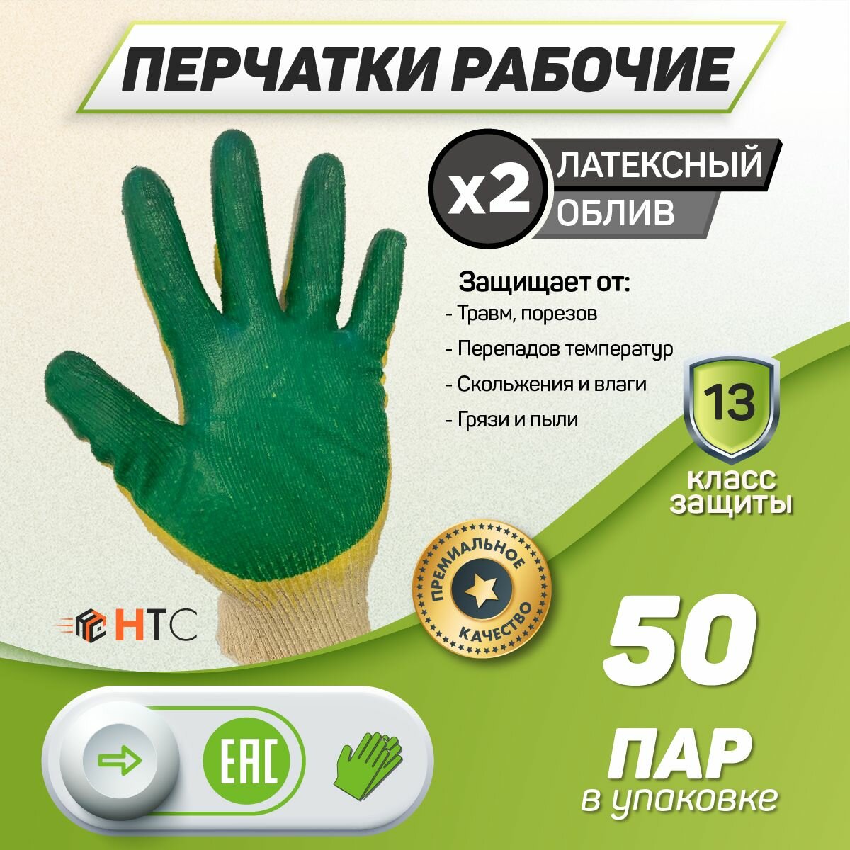 10 цен на Перчатки рабочие НТС, строительные с двойным латексным обливом 50 пар