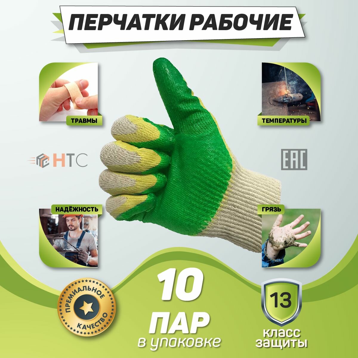 10 цен на Перчатки рабочие НТС, строительные с двойным латексным обливом 10 пар