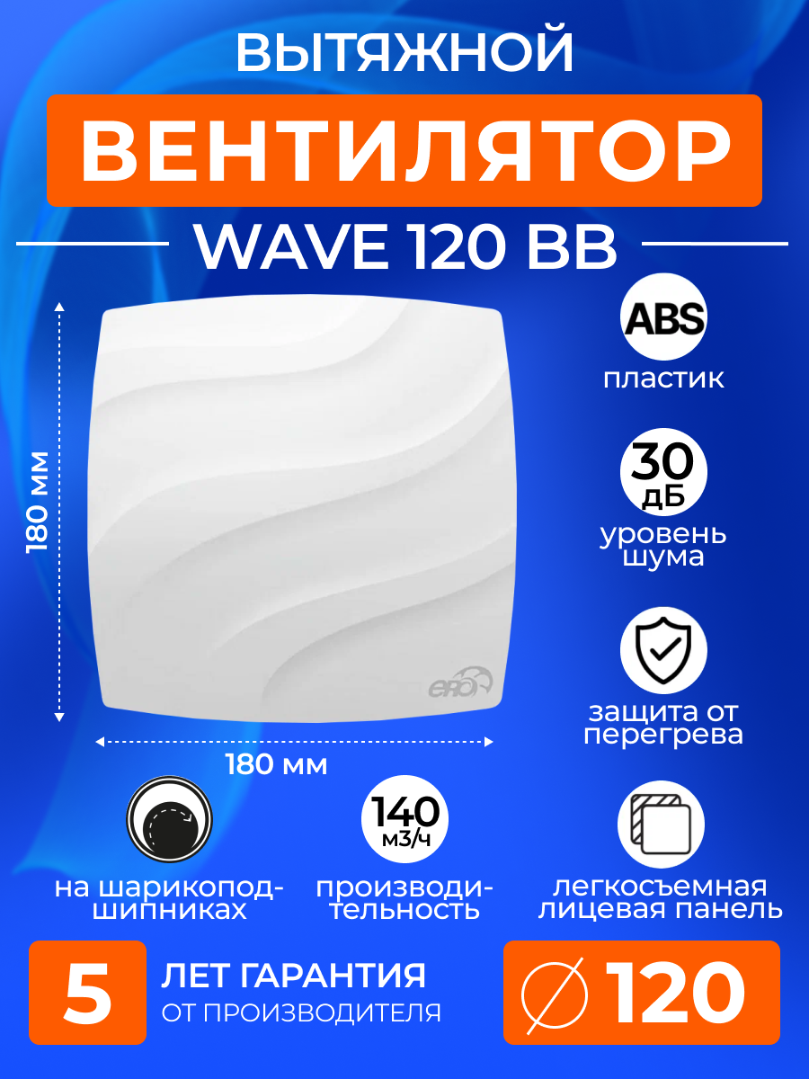 Вентилятор вытяжной ERA WAVE 120 BB, 120 мм, двигатель на шарикоподшипниках информация: