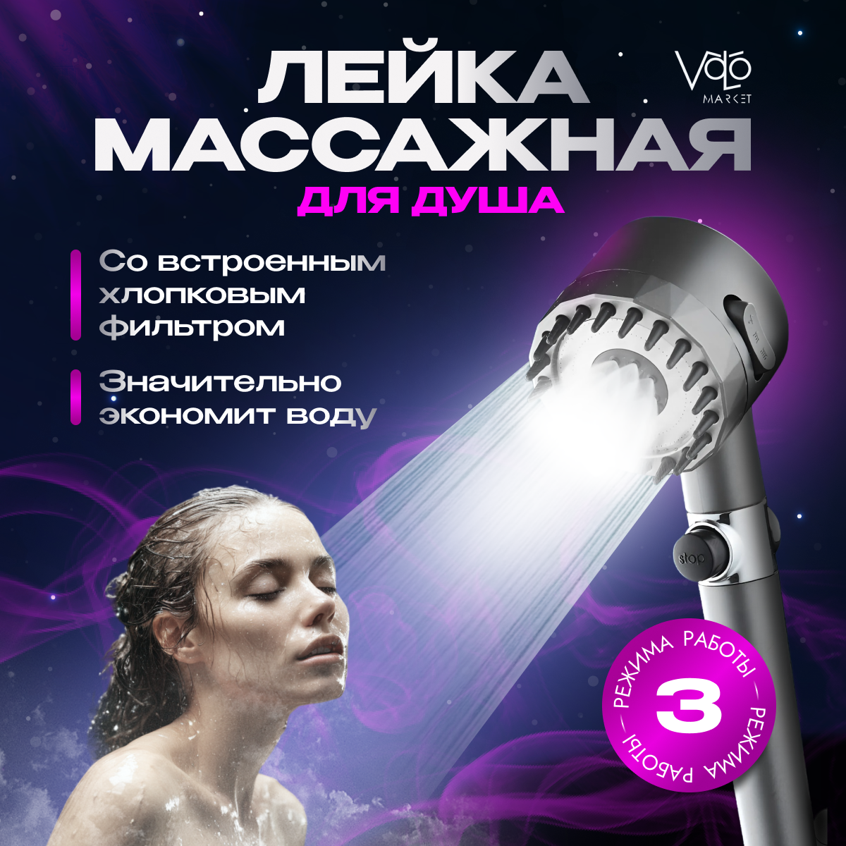 Лейка для душа, с массажным эффектом, 3 режима переключения напора, водосберегающая. информация:
