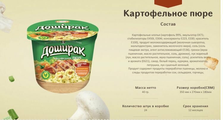 - Пюре и лапша быстрого приготовления