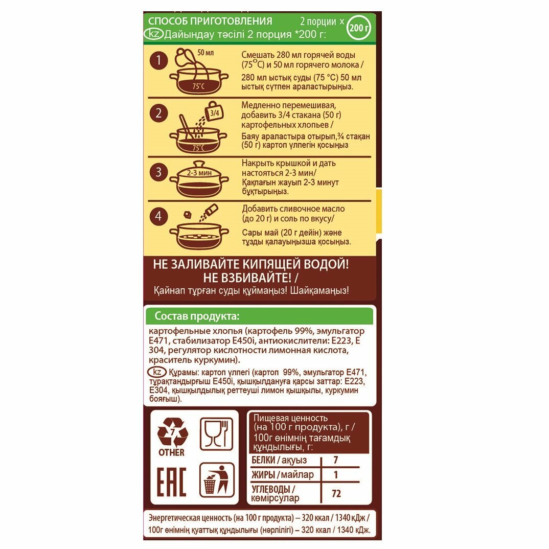 | Состав | Картофельные хлопья |