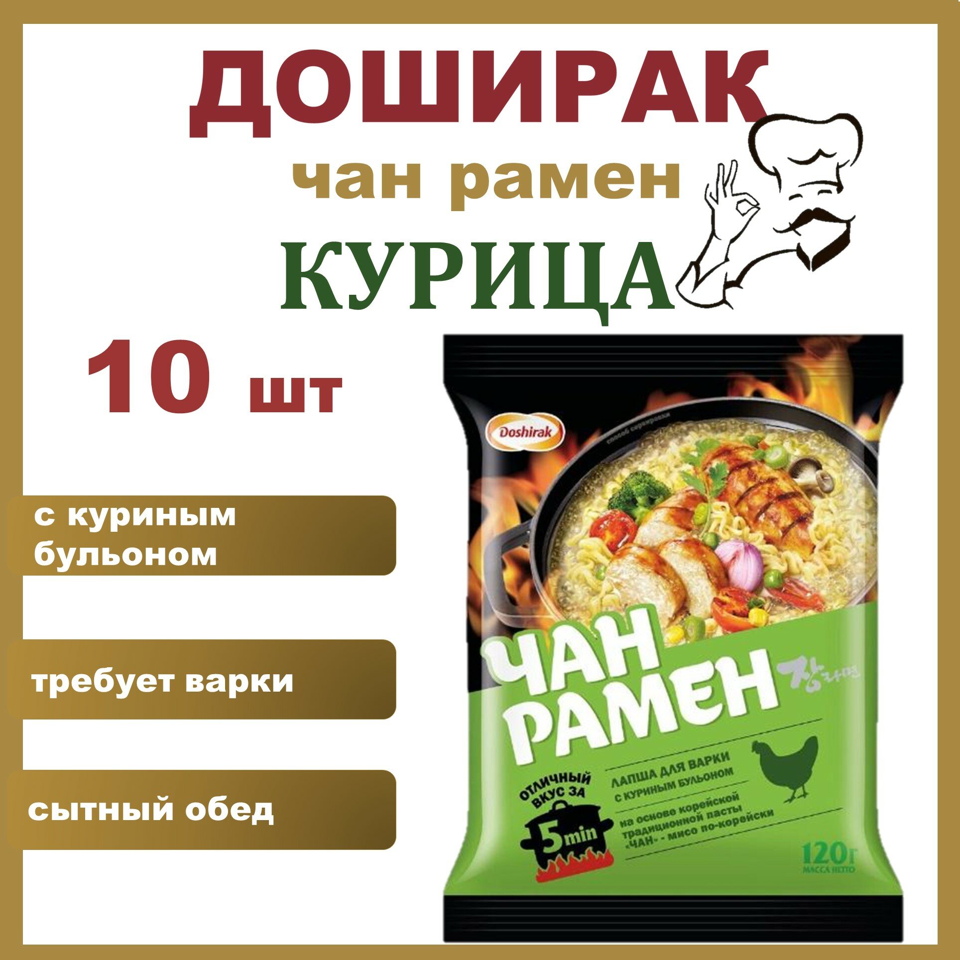 Доширак Чан рамен курица набор 10 шт*120 гр лапша быстрого приготовления/Россия информация: