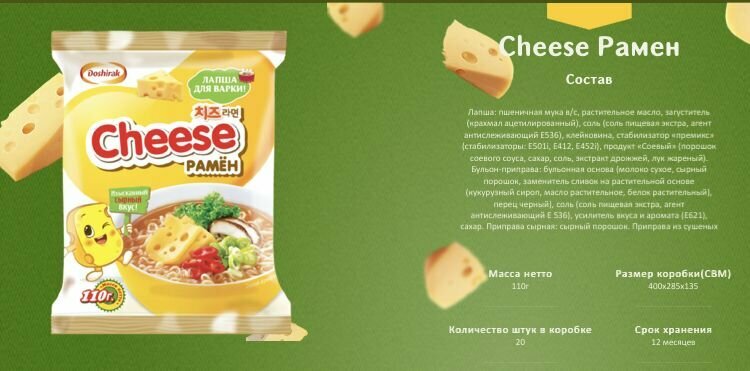 Лапша быстрого приготовления Доширак Чиз Рамён сыр 110гр / 20шт информация: