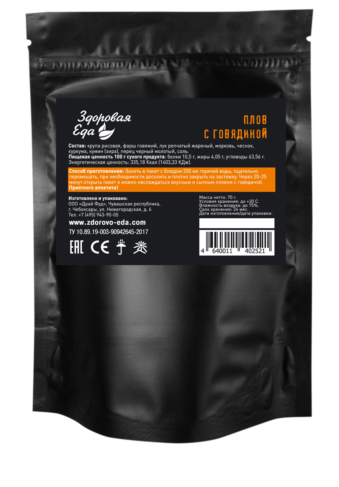 Плов Здоровая еда с говядиной без варки сублимированное блюдо быстрого приготовления для похода, 70 г информация: