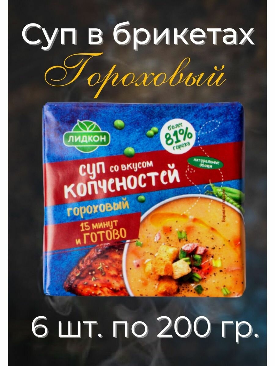 Суп быстрого приготовления гороховый с копченостями Лидкон, 6 шт. информация: