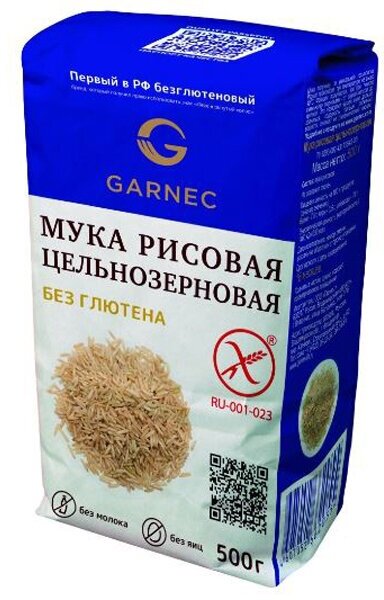 Мука гарнец Рисовая цельнозерновая б/глютена 500г информация:
