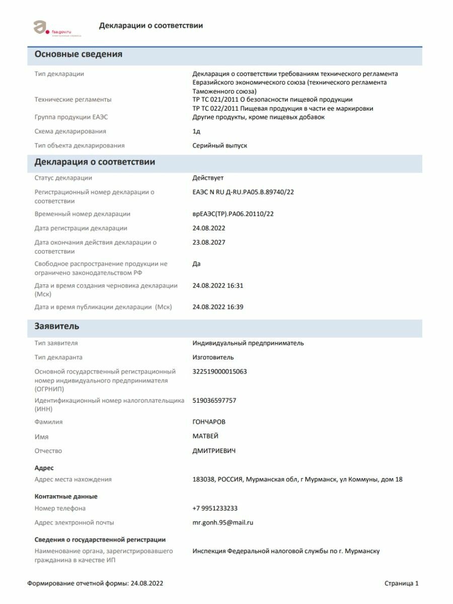 | Срок хранения | 2 г. |