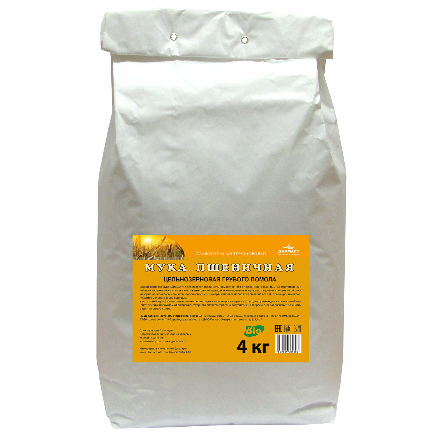 Мука пшеничная грубого помола цельнозерновая BIO 4кг информация: