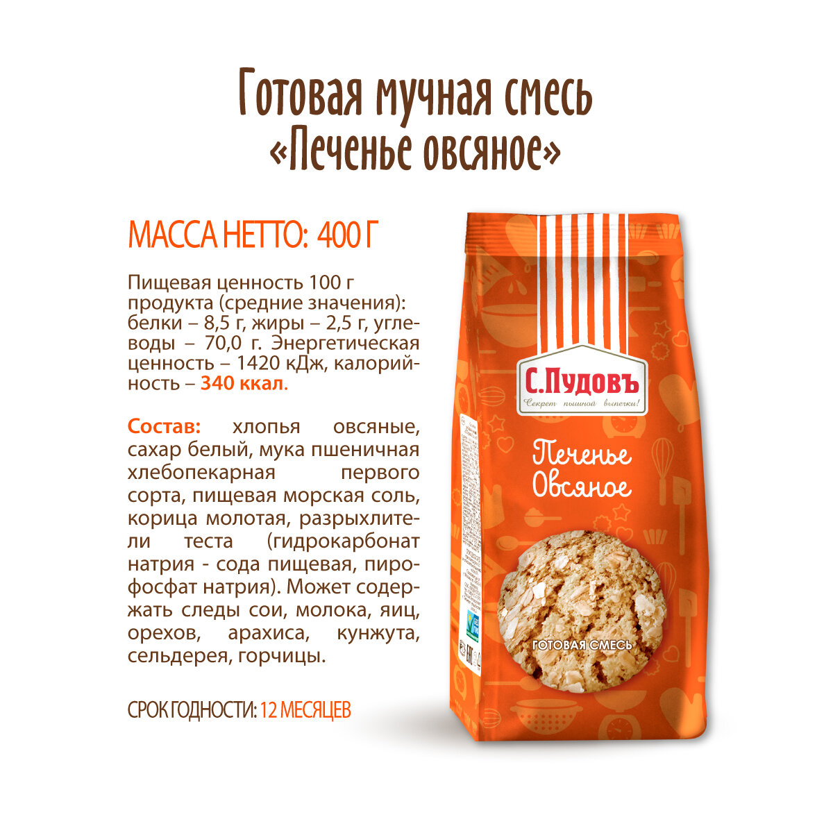 Смесь для выпечки "Печенье овсяное" С.Пудовъ, 400 г информация: