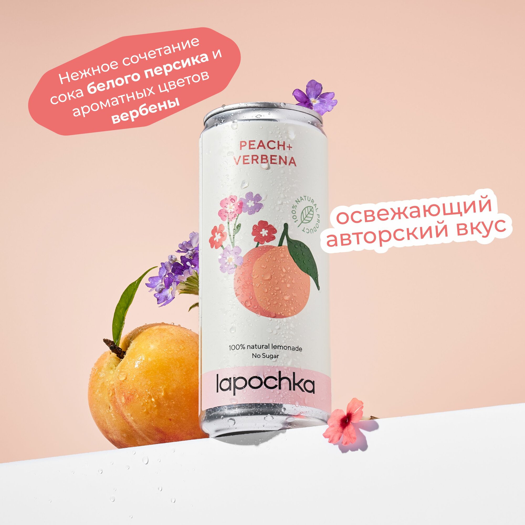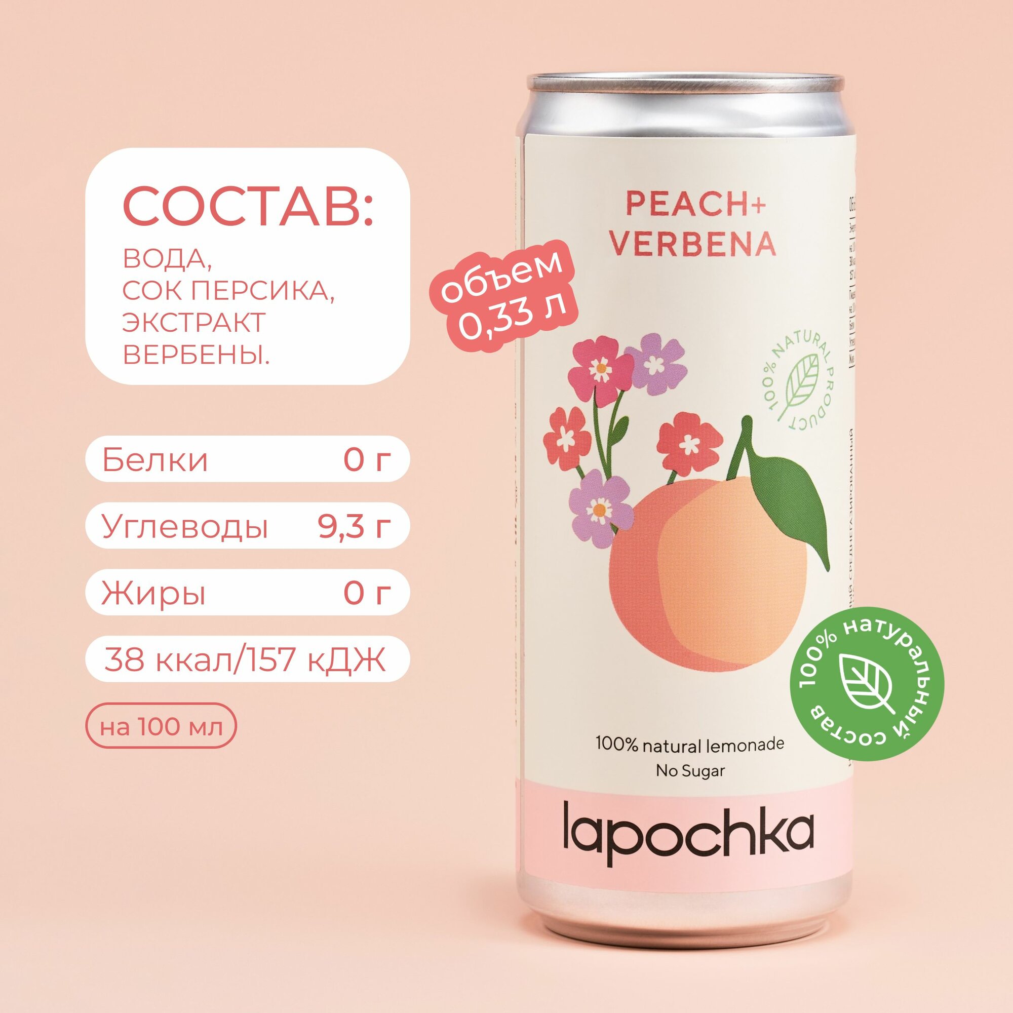 Натуральный лимонад без сахара LAPOCHKA Персик + Вербена 20 x 0,33 л информация: