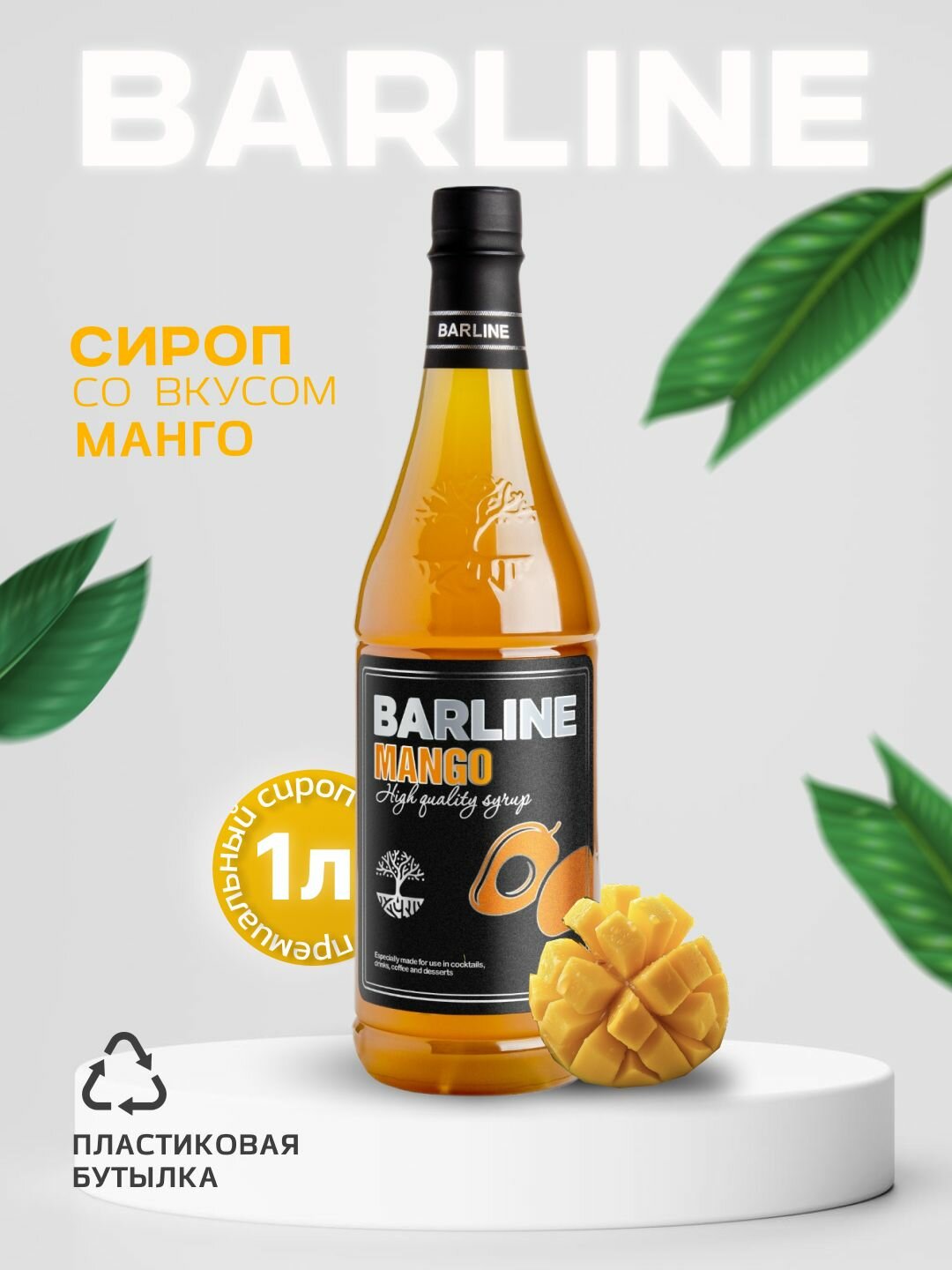 Сироп Barline Манго (Mango), 1 л, для кофе, чая, коктейлей и десертов, ПЭТ информация: