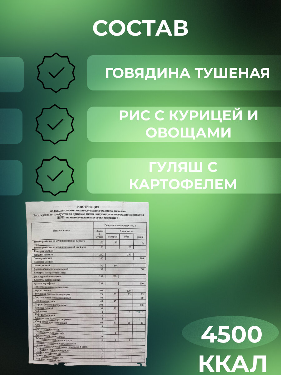 Сухой паек армейский ИРП 2,1 кг меню №5 "Пятница" информация: