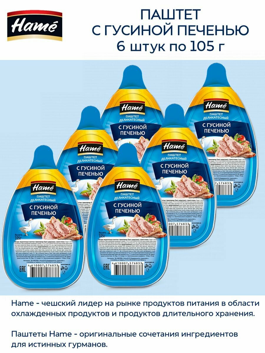 Паштет Hame с гусиной печенью, 6 упаковок по 105 грамм. информация: