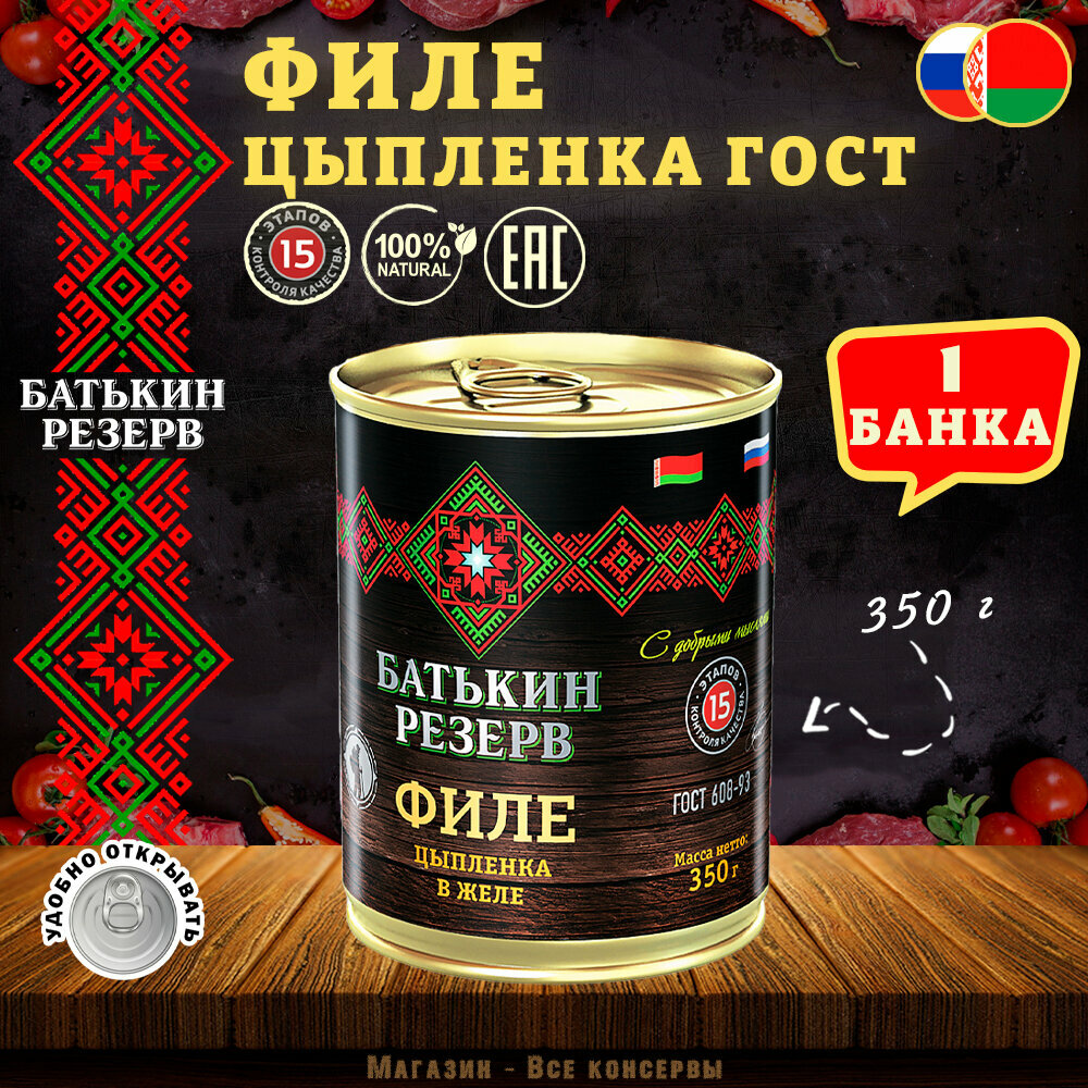 Цыпленок филе в желе, Батькин резерв, ГОСТ, 1 шт. по 350 г информация:
