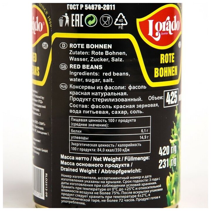 Фасоль красная, Lorado, 1 шт. по 425 мл информация: