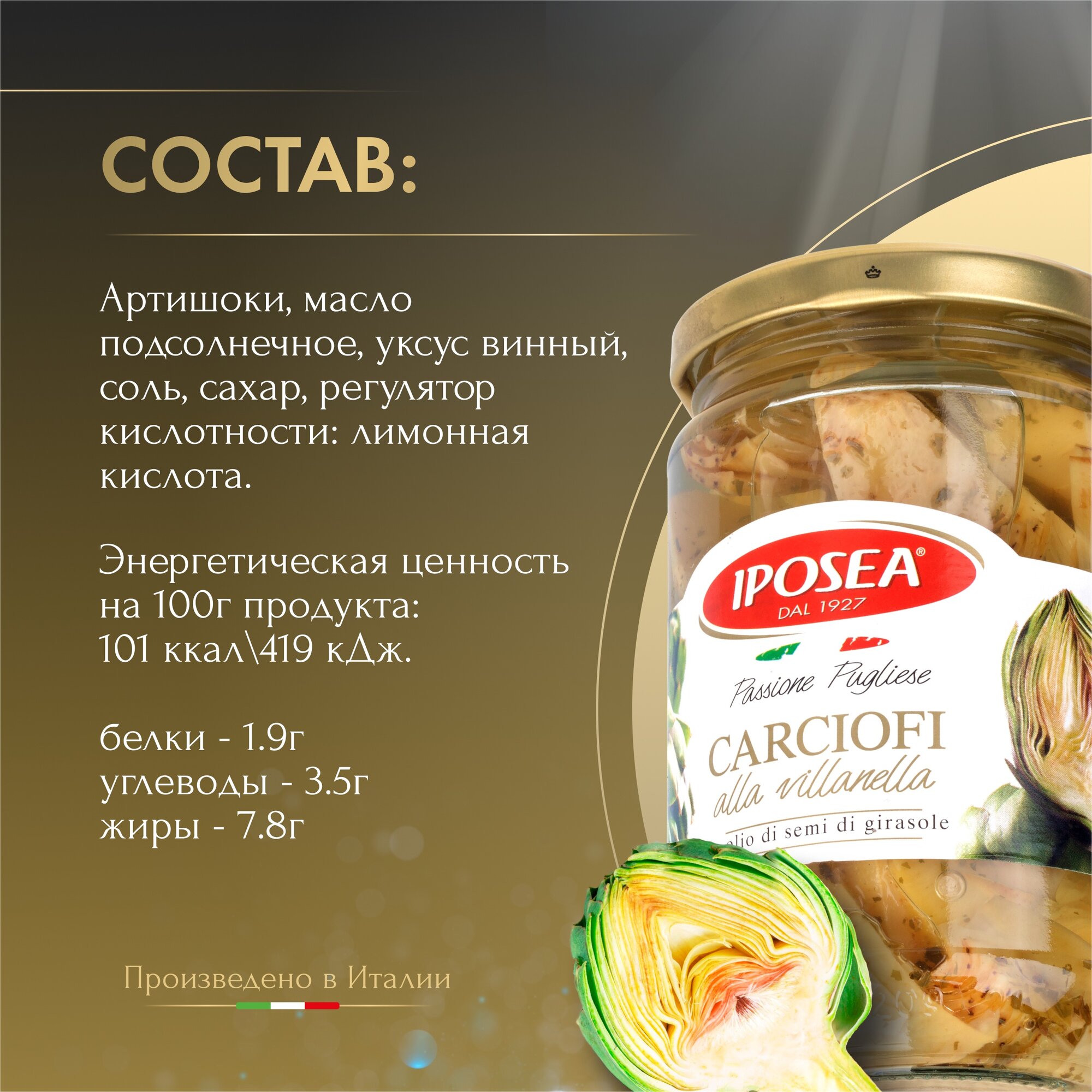 Артишоки IPOSEA Виланелла, резаные в масле, 290 г информация: