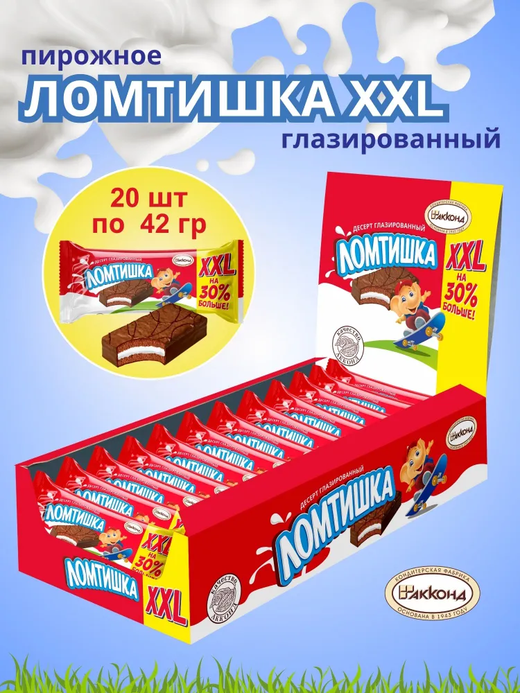 Десерт бисквитный ломтишка XXL глазированный, 20 шт по 42 гр, Акконд информация: