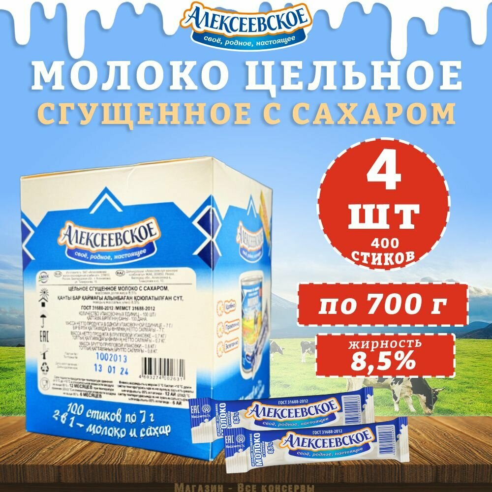 Молоко цельное сгущенное с сахаром 8,5%, 100 стиков по 7 г 705 ₽