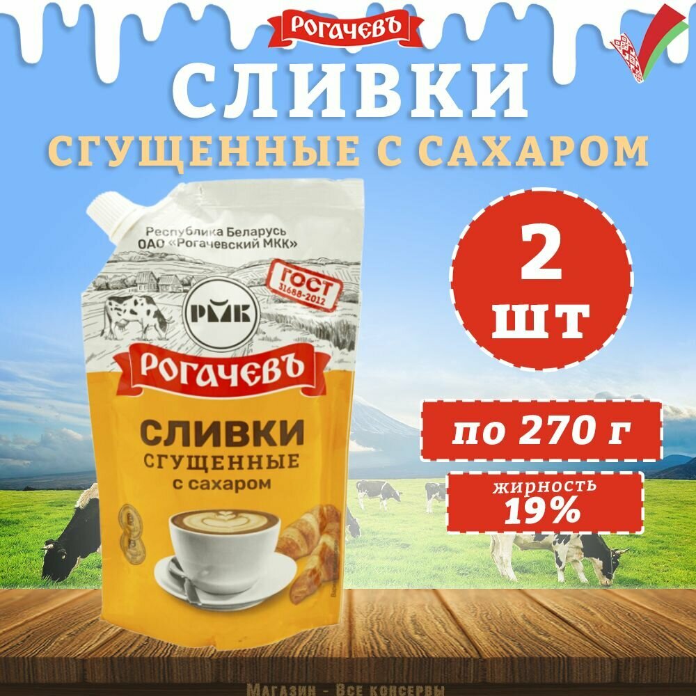 Сливки сгущенные с сахаром 19% дойпак Рогачев ГОСТ, 2 шт по 270 г информация: