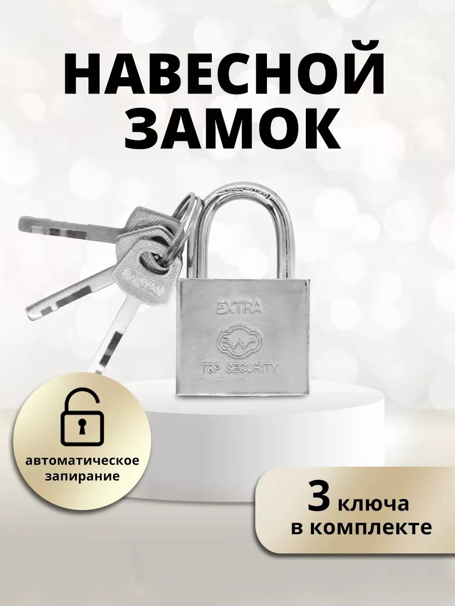 Замок навесной для шкафчика, 30мм, 3ключа серебрянный информация: