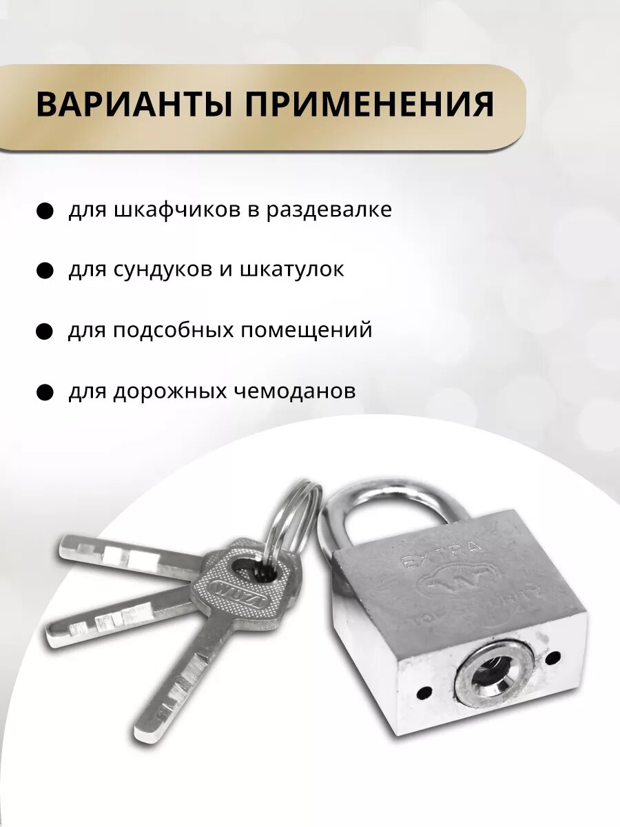 10 цен на Замок навесной для шкафчика, 30мм, 3ключа серебрянный