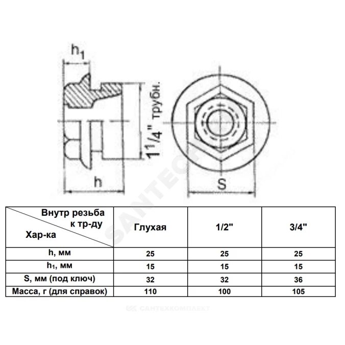 10 цен на Заглушка (пробка) проходная 1 1/4"x1/2" левая резьба для чугунных радиаторов (РБ)