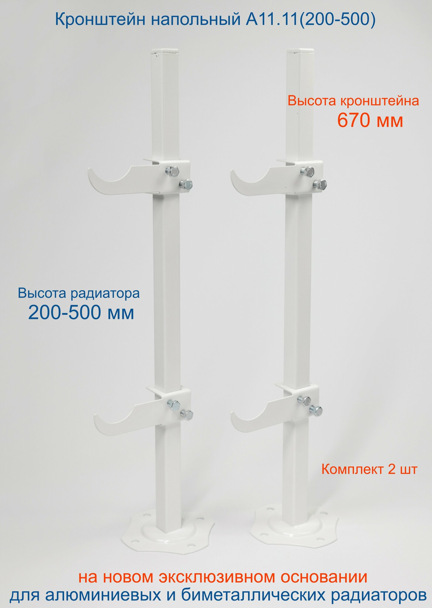 Кронштейн напольный регулируемый Кайрос А11.11п для алюминиевых и биметаллических радиаторов высотой 200-500 мм (высота стойки 670 мм) Комплект 2 шт. информация: