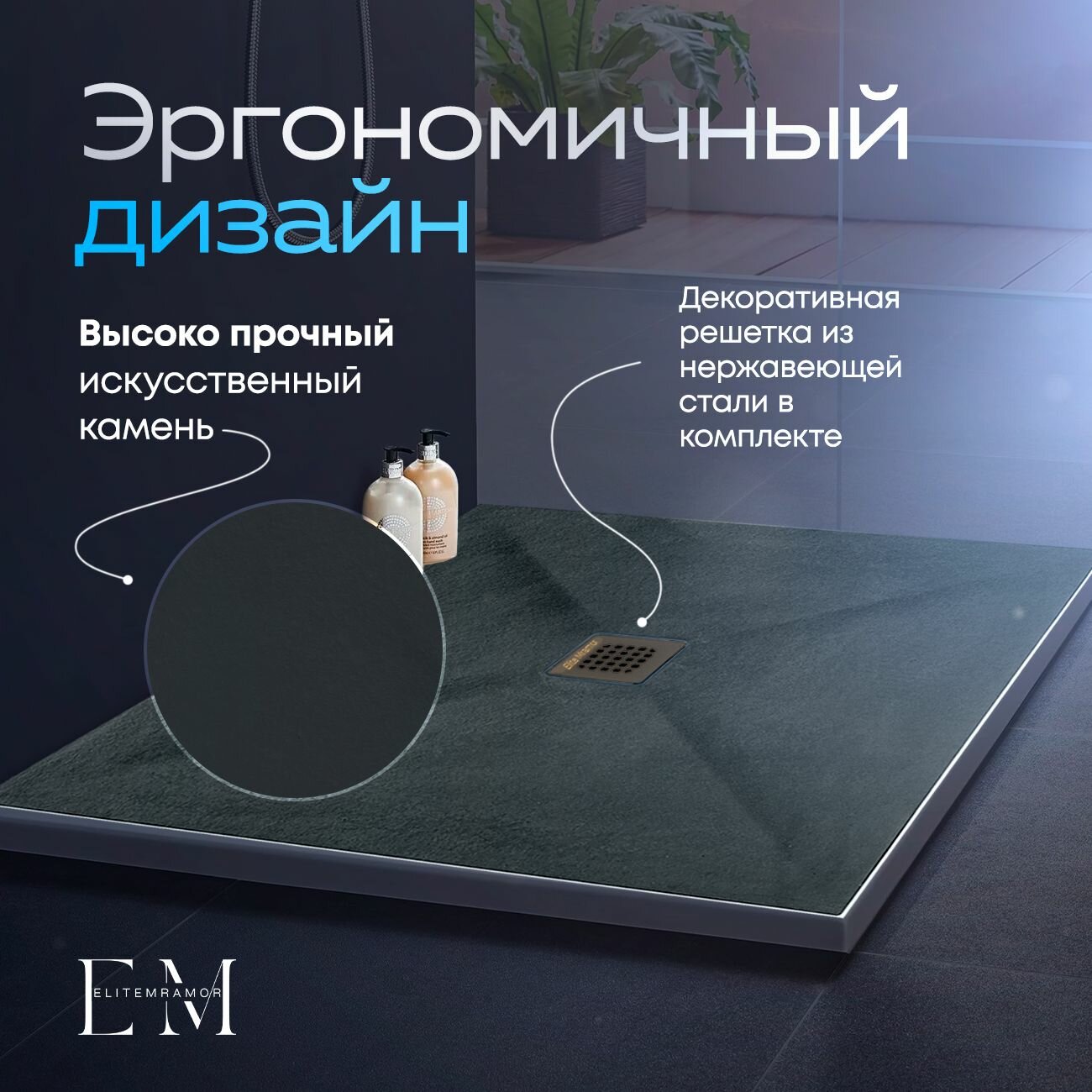 Поддон для душа 80х80 см, ELITE MRAMOR, серый искусственный камень 17 500 ₽
