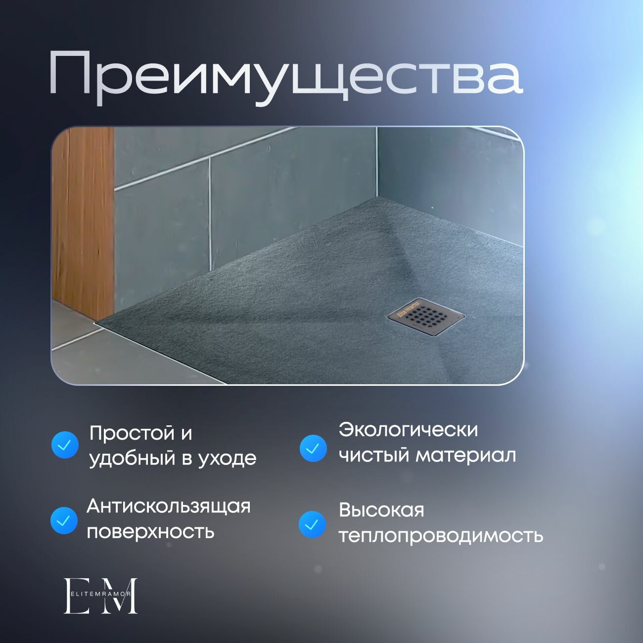 Душевой поддон из искусственного камня ELITE MRAMOR 80/80 серый информация:
