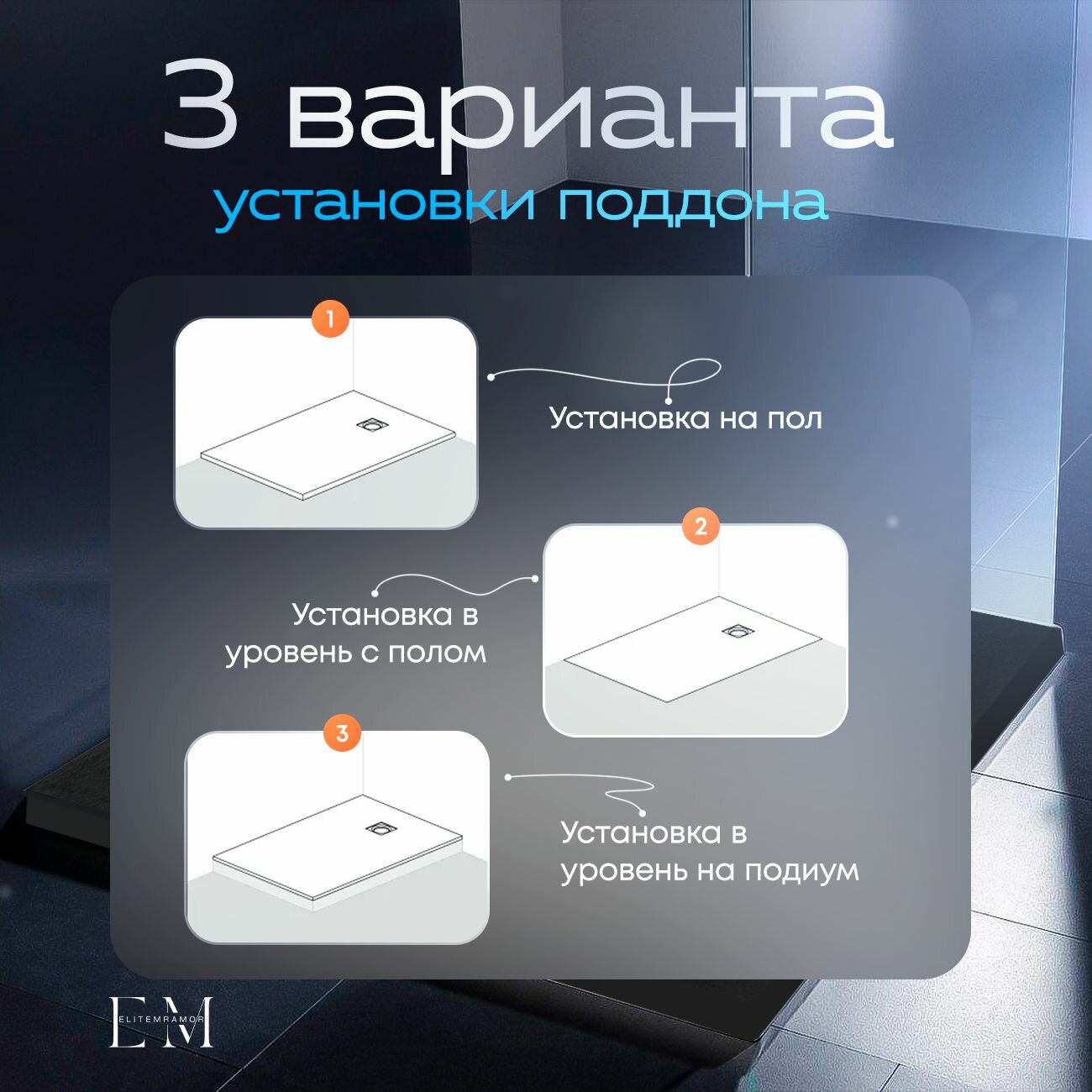 Поддон для душа 170х80 см, ELITE MRAMOR, серый искусственный камень 38 500 ₽