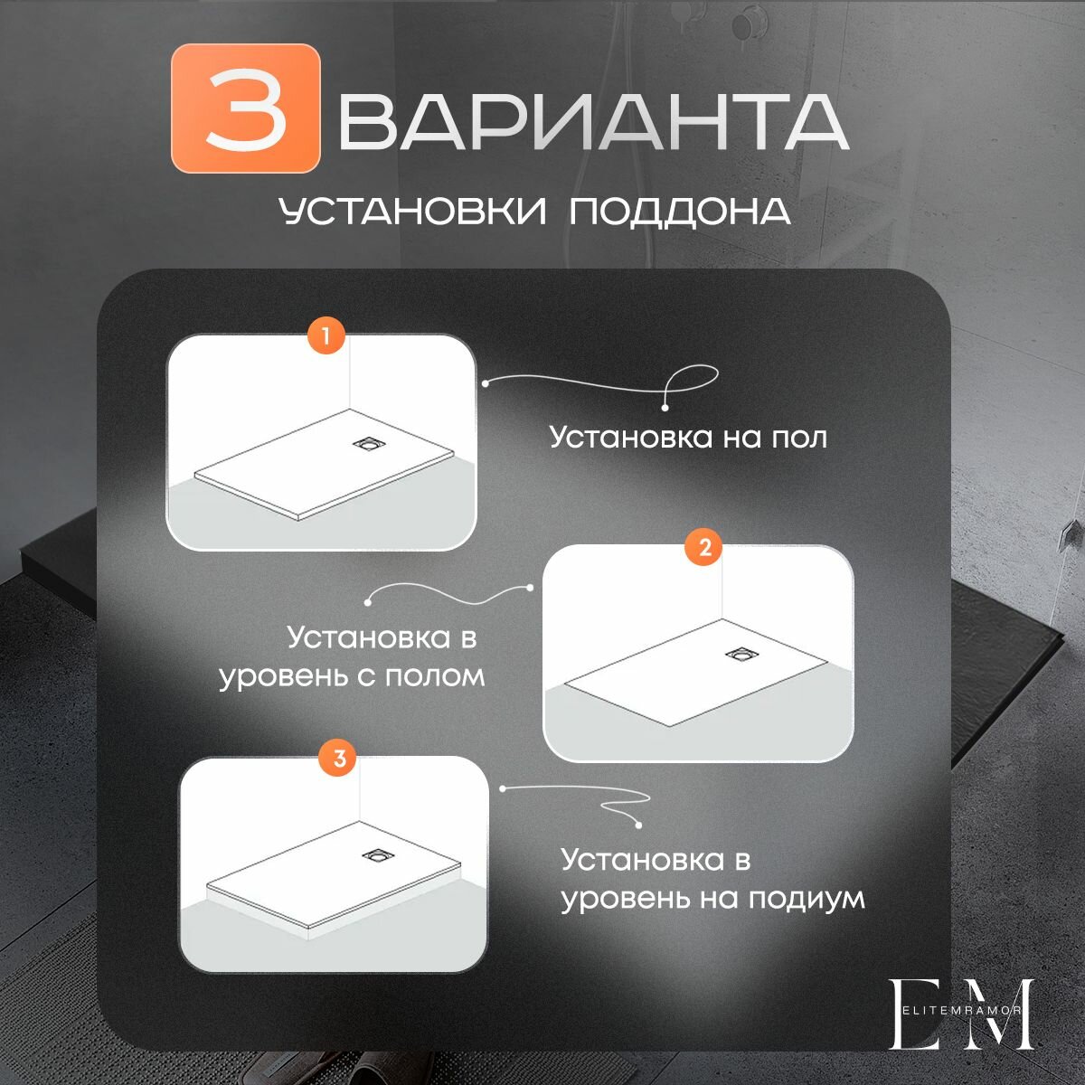 Поддон для душа 170х80 см, ELITE MRAMOR, серый искусственный камень 38 500 ₽