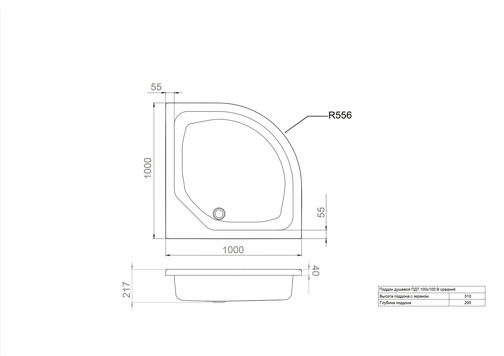 Душевой поддон ARAGUT 100х100 полукруг, средний информация: