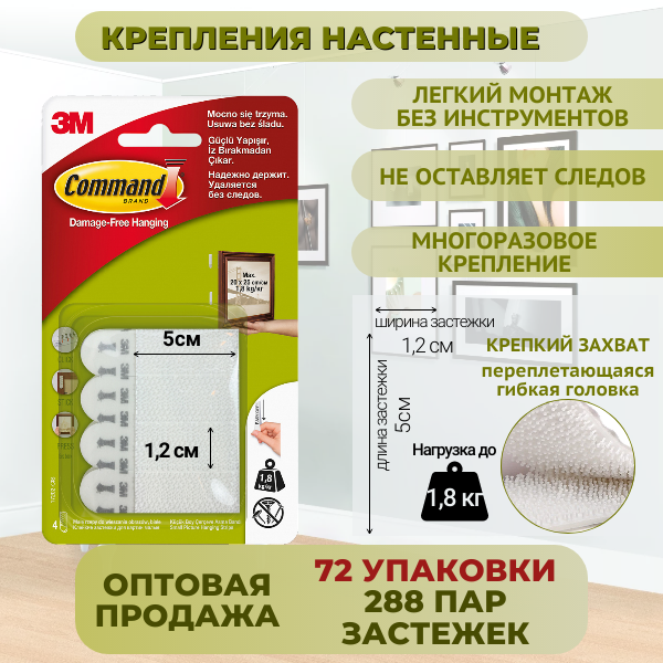 Отзывы на Клейкие полоски застежки вешалки для картин Command (17202), 16 мм x 5см, белые малые 4пары/уп, 72 уп