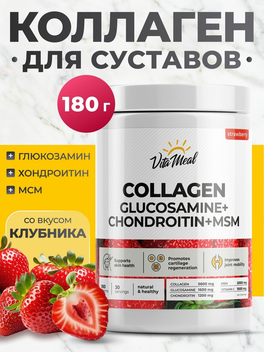Коллаген для суставов с глюкозамин хондроитин мсм VitaMeal Collagen Gluc+Chond+MSM, порошок, 180 грамм, Клубника 800 ₽