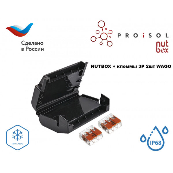 10 цен на Набор NUTBOX IP68 влагозащитный корпус с гелем + клеммы 2шт 221-413 WAGO 3 полюса 0.25-4 мм², (уп.-1 шт)
