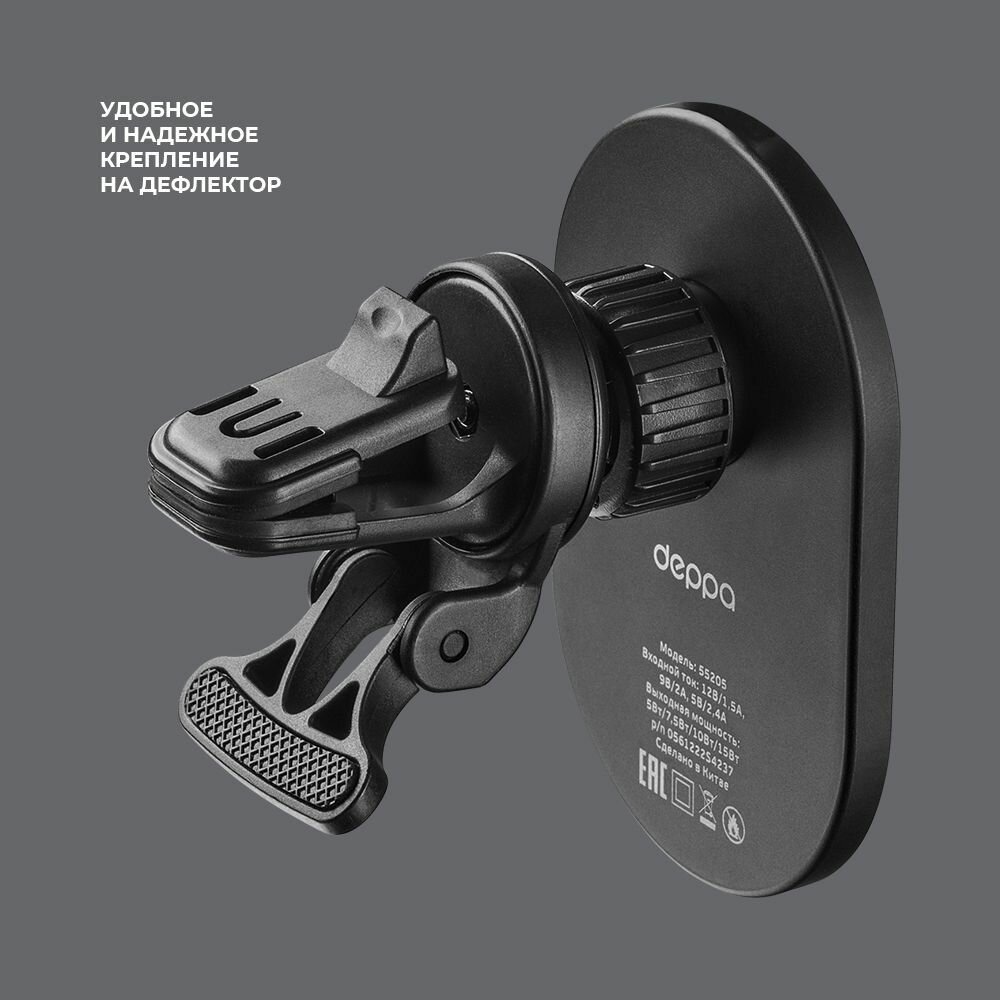 Универсальный магнитный держатель для смартфона автомобильный, крепление на вентиляционную решетку (прищепка), MagSafe Flat, черный,Deppa 55203-OZ / Без заводской упаковки 1 889 ₽