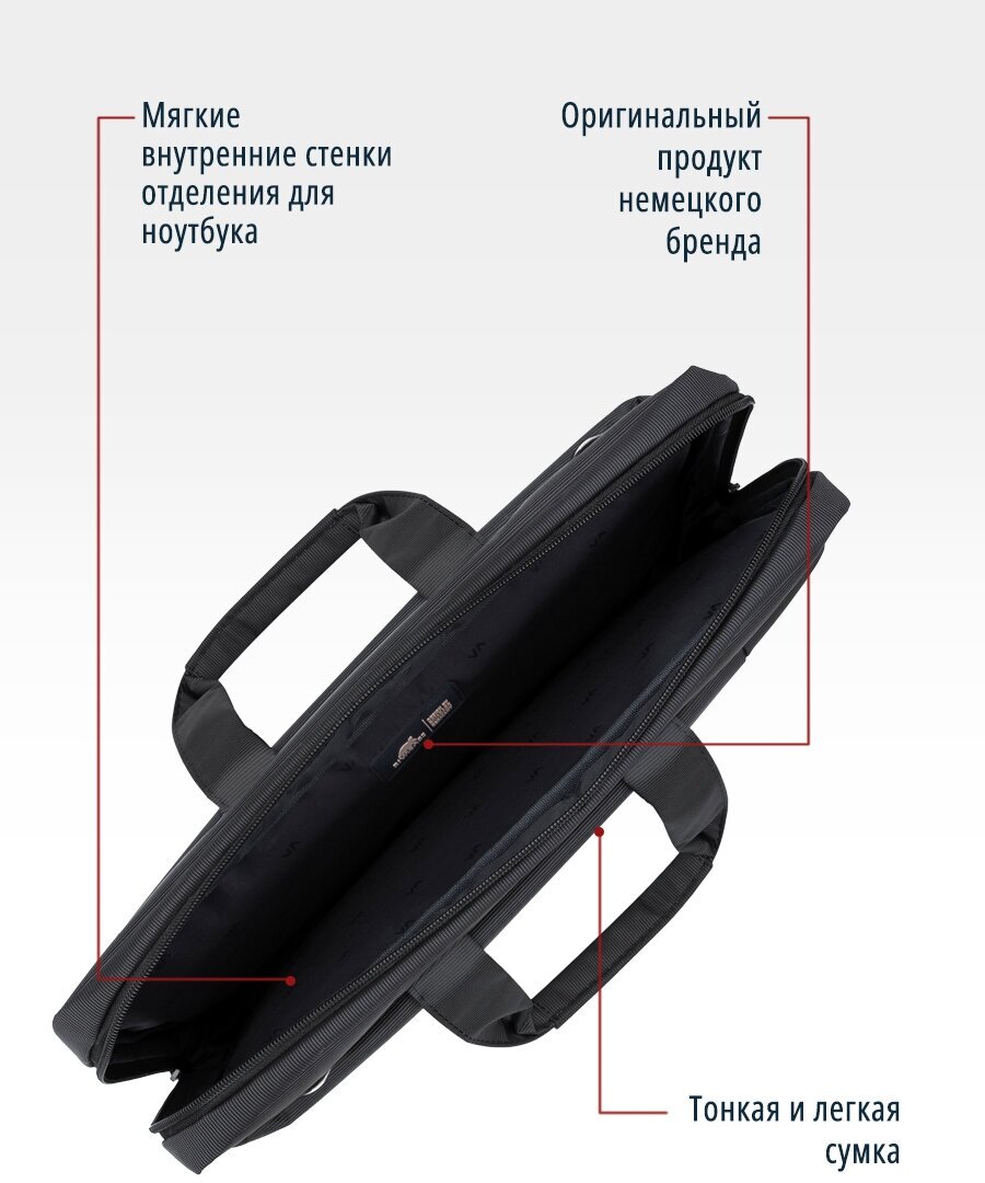Сумка RIVACASE Сумка для ноутбука до 15,6 дюймов, чехол под ноутбук, макбук (Macbook), ультрабук, размер 40-28-7 см grey